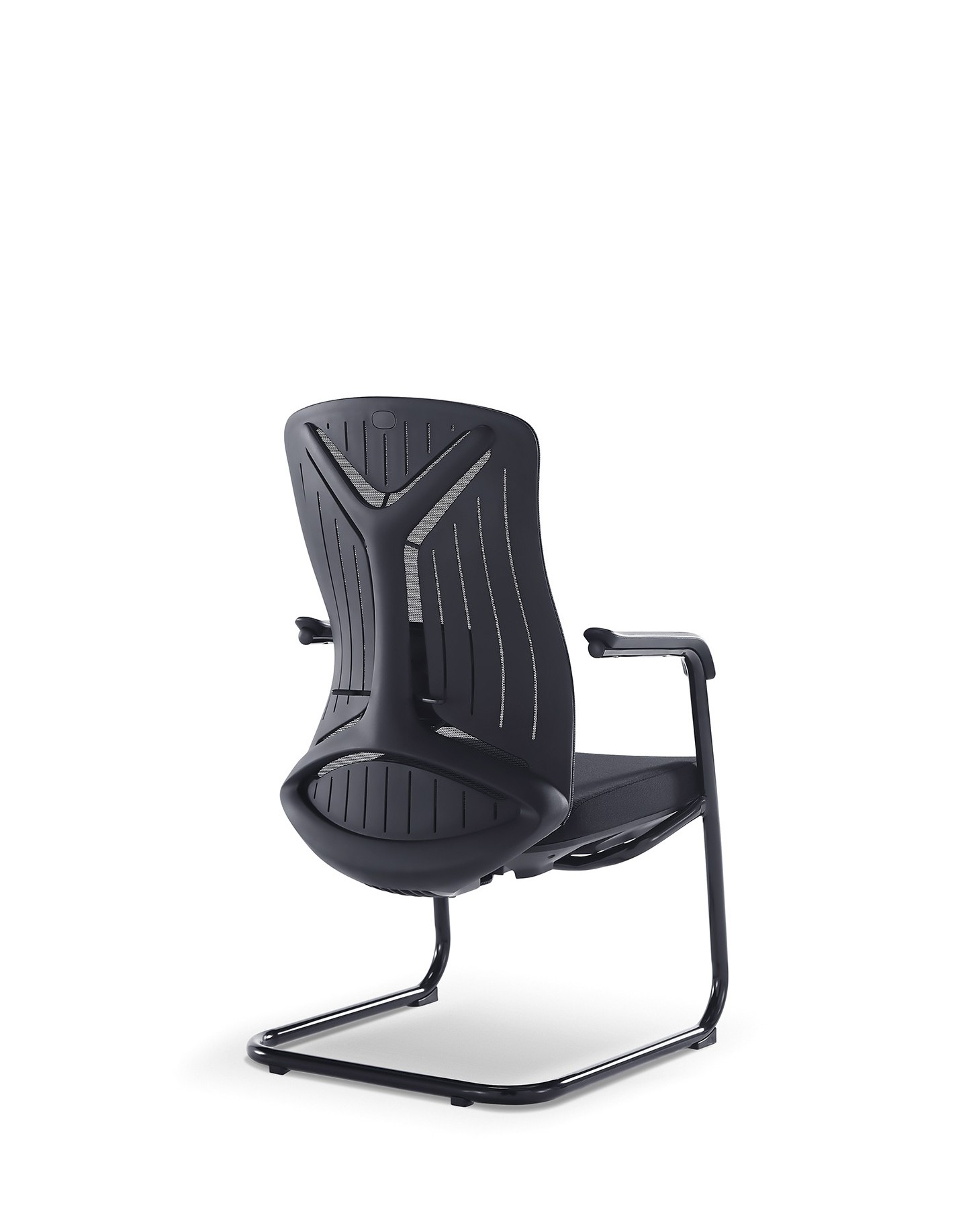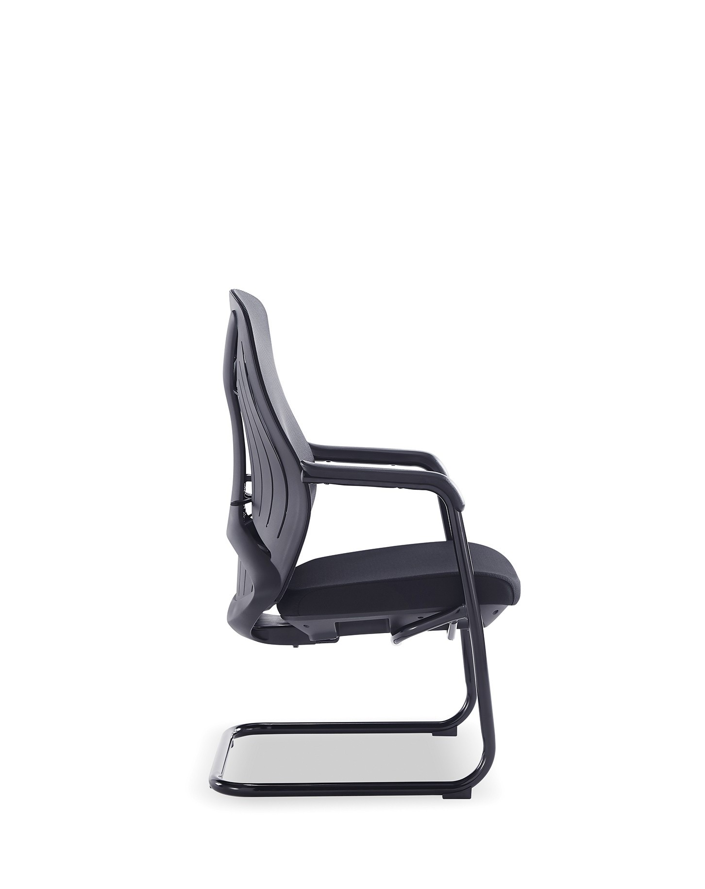 Professional cantilever guest chair with distinctive patterned mesh design in sleek black finish, perfect for modern office visitor seating areas.