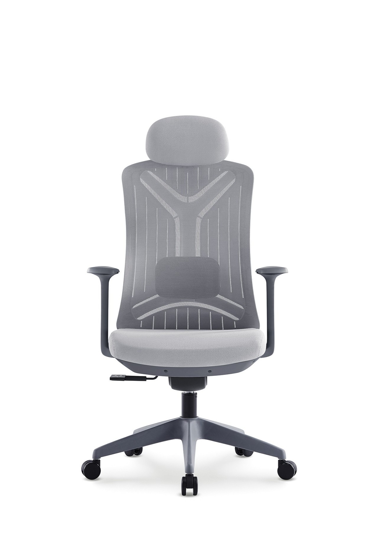 - Armrests: Adjustable grey PP with soft padding