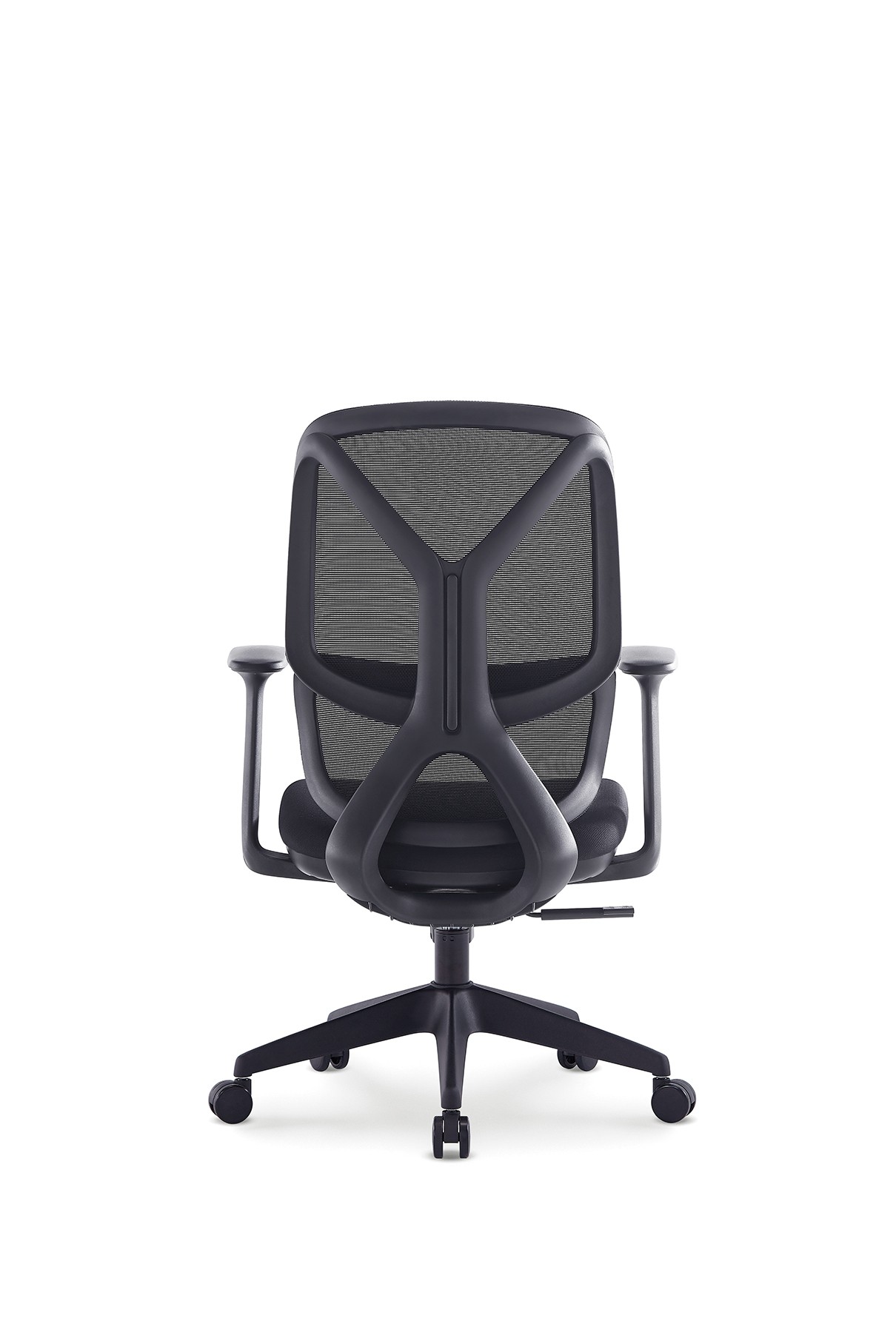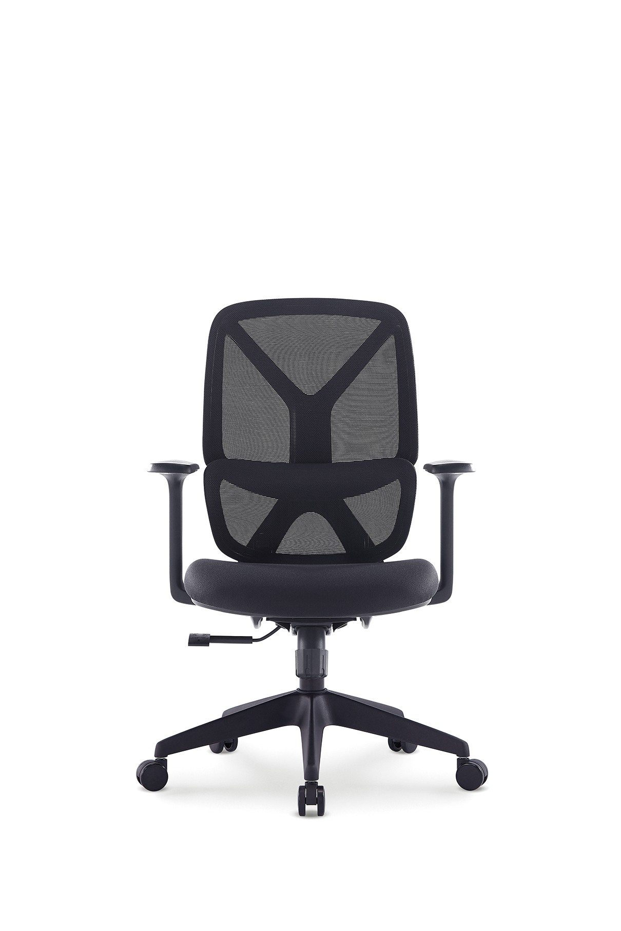 Ergonomic mesh chair with lumbar support, breathable backrest, padded seat, adjustable height, swivel function, and tilt control for all-day comfort.