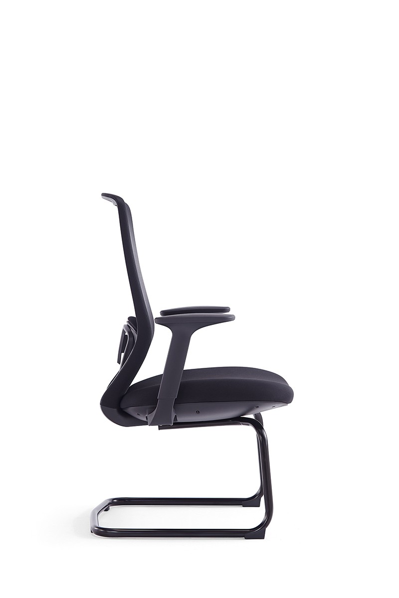 Elegant visitor chair with black cantilever frame, offering professional appearance and comfortable mesh seating for client meetings and office reception areas.