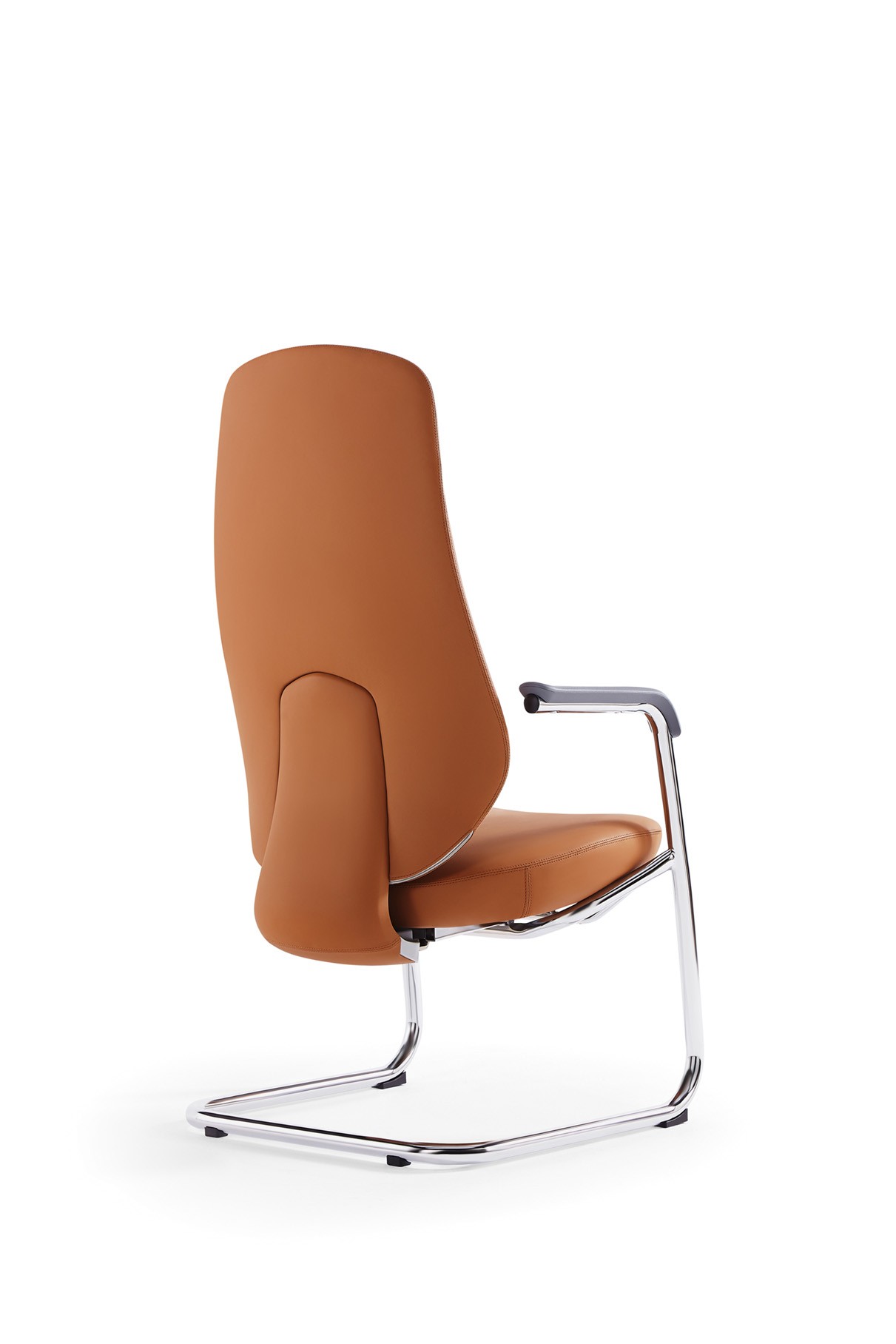 Premium guest chair featuring leather upholstery, high-back design, chrome cantilever base, ergonomic support, and professional styling for office environments.