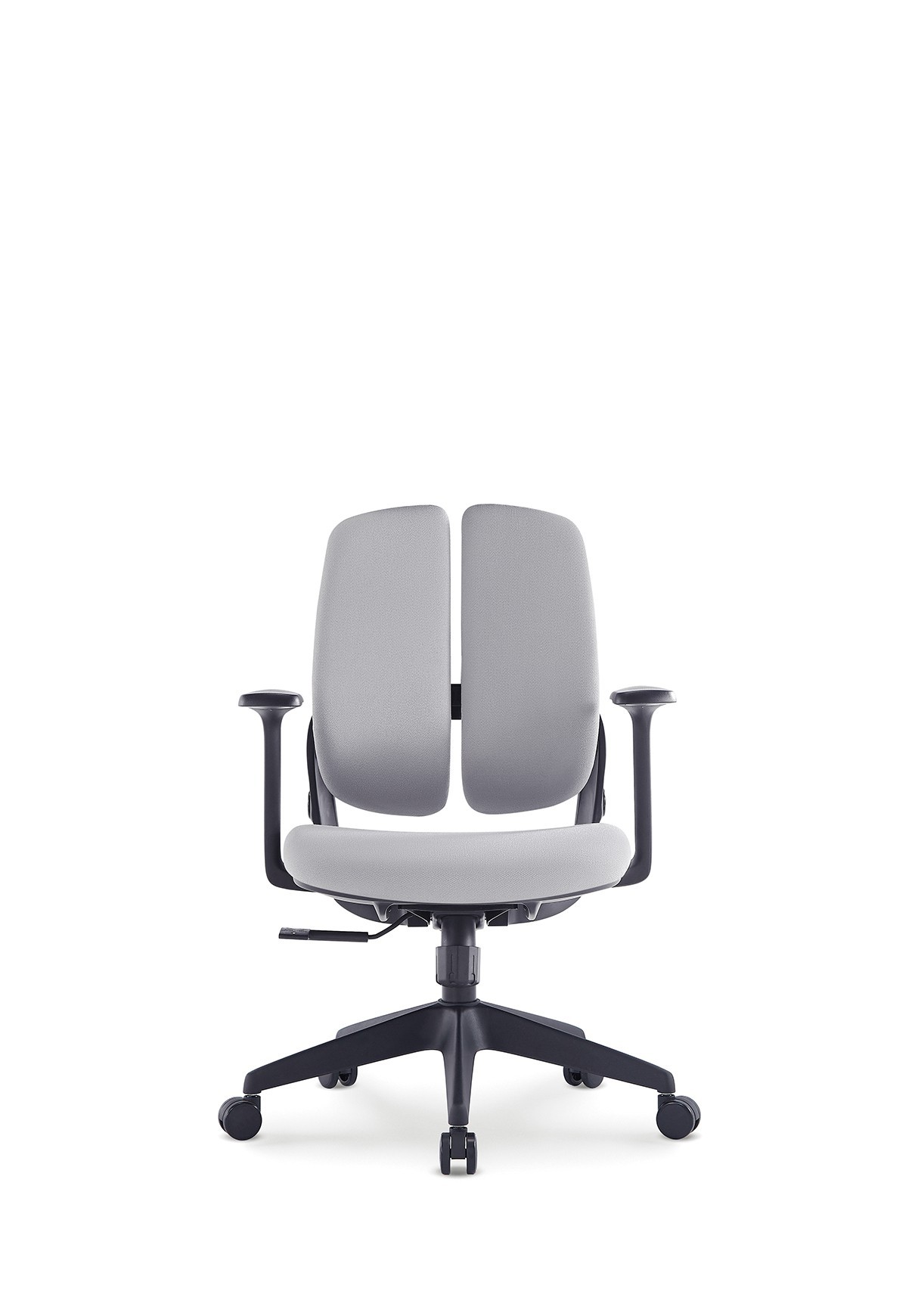 Professional task chair featuring dual-back fabric upholstery, ergonomic support, adjustable armrests, and smooth mobility for productive office environments.