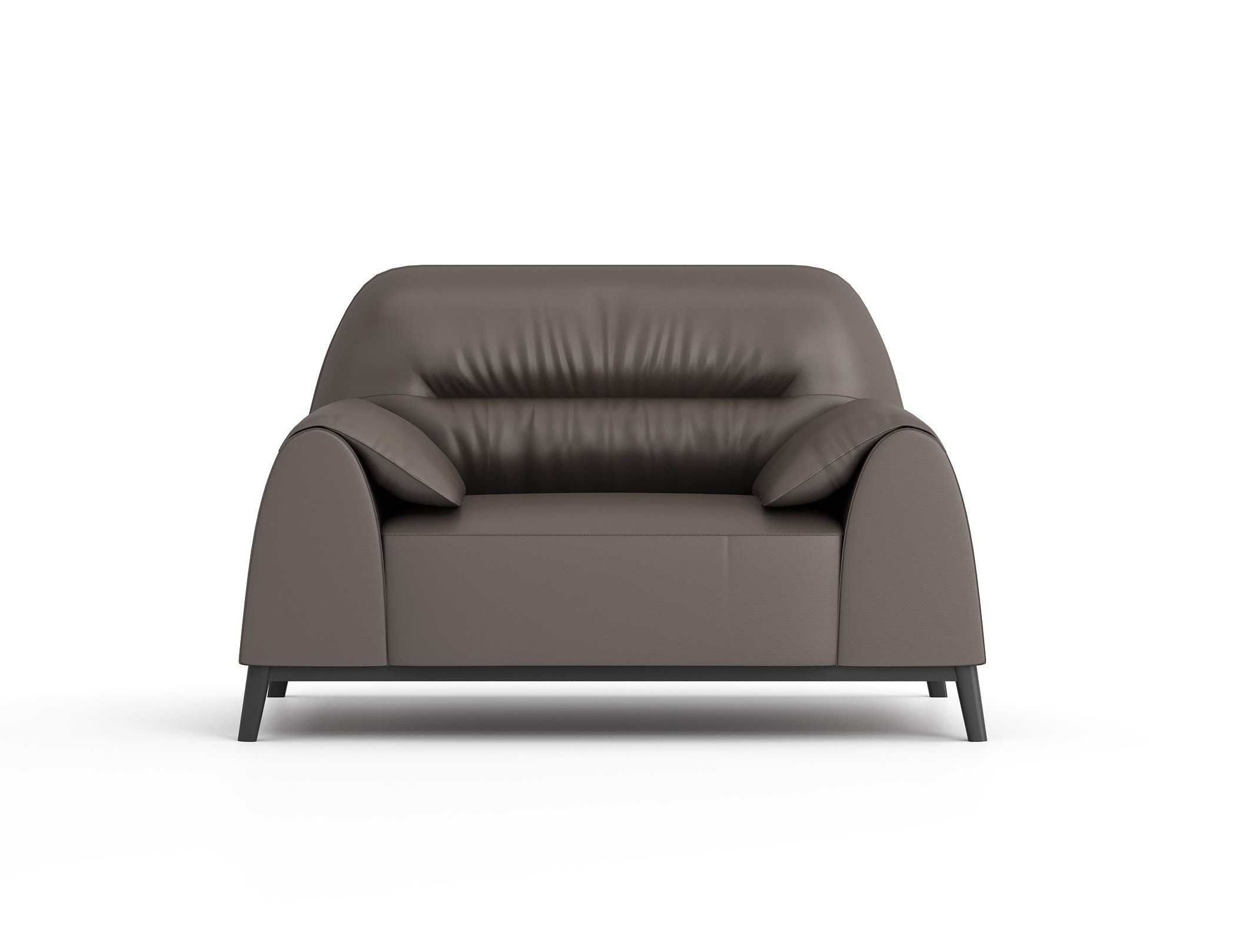 Contemporary dual-tone leather sofa featuring taupe and charcoal upholstery with distinctive angular black metal legs for sophisticated modern interiors.