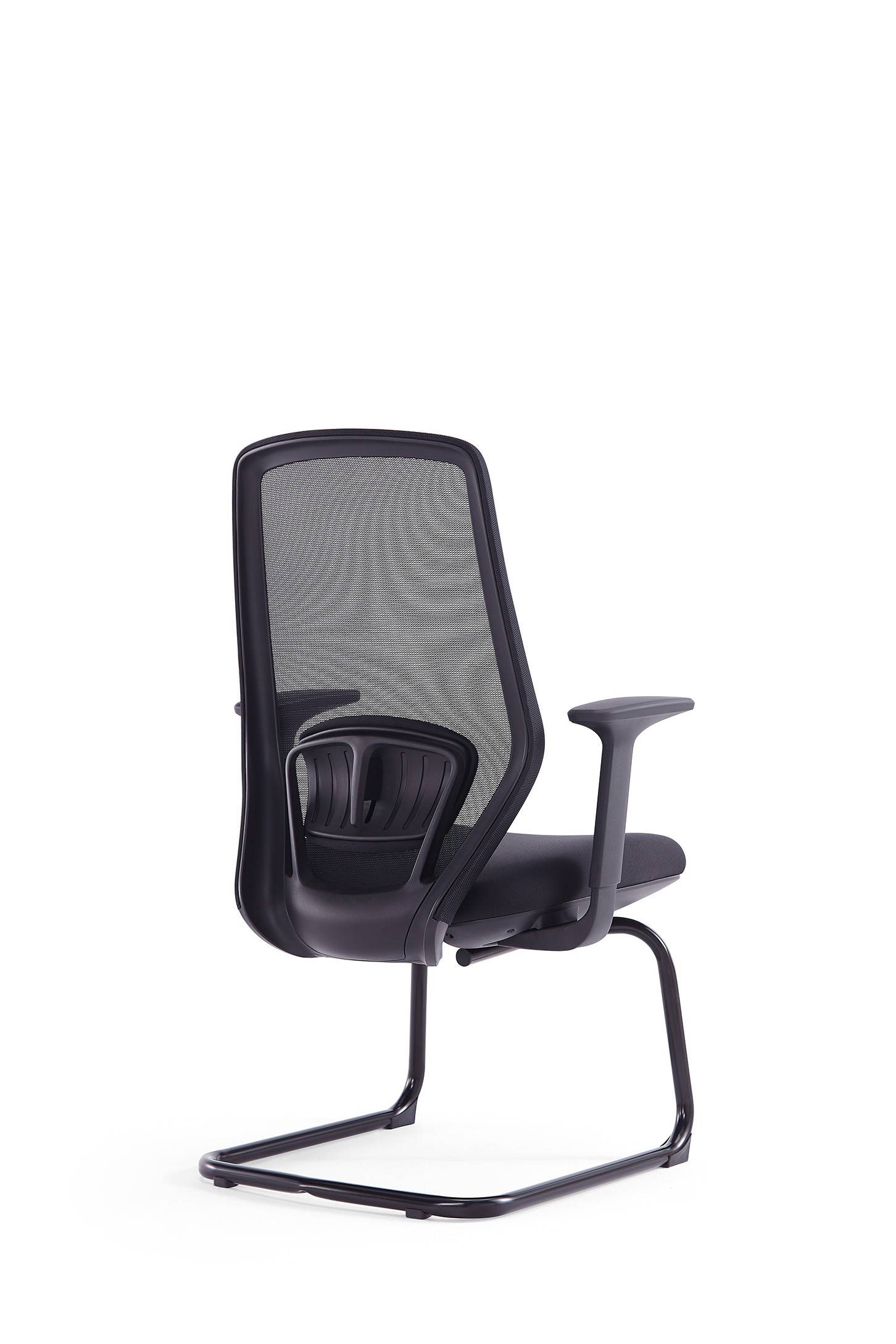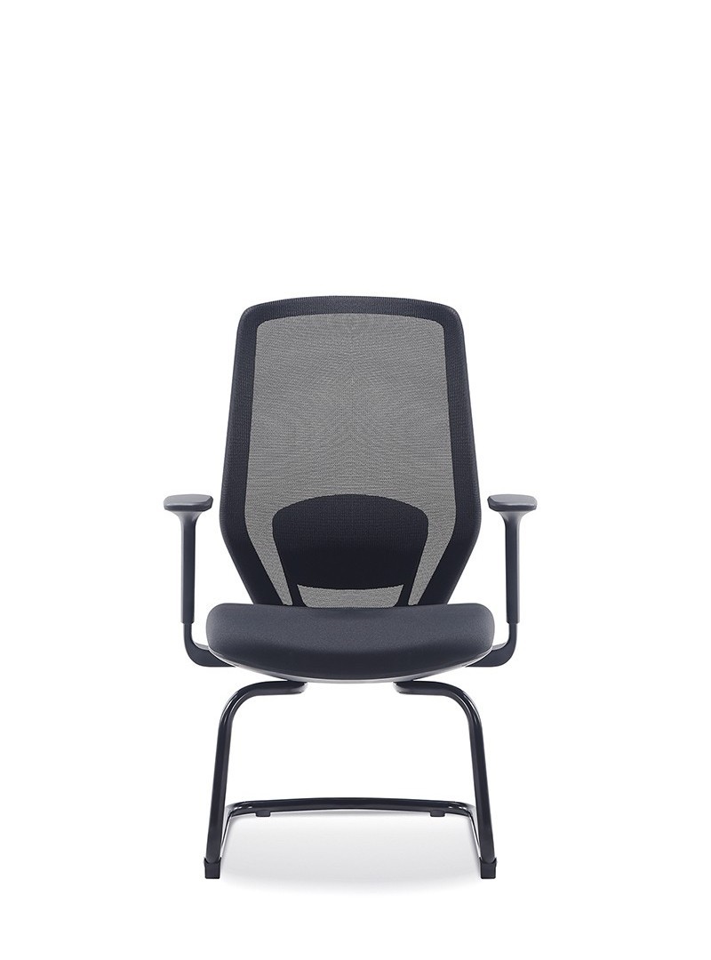 Elegant visitor chair with black cantilever frame, offering professional appearance and comfortable mesh seating for client meetings and office reception areas.