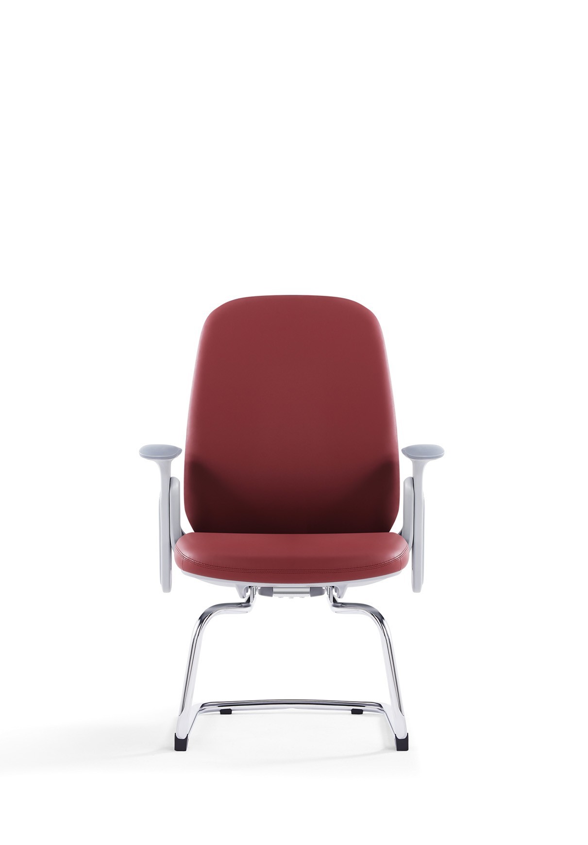 Professional guest chair featuring leather upholstery, mid-back design, chrome armrests, cantilever base design, and comfortable visitor seating.