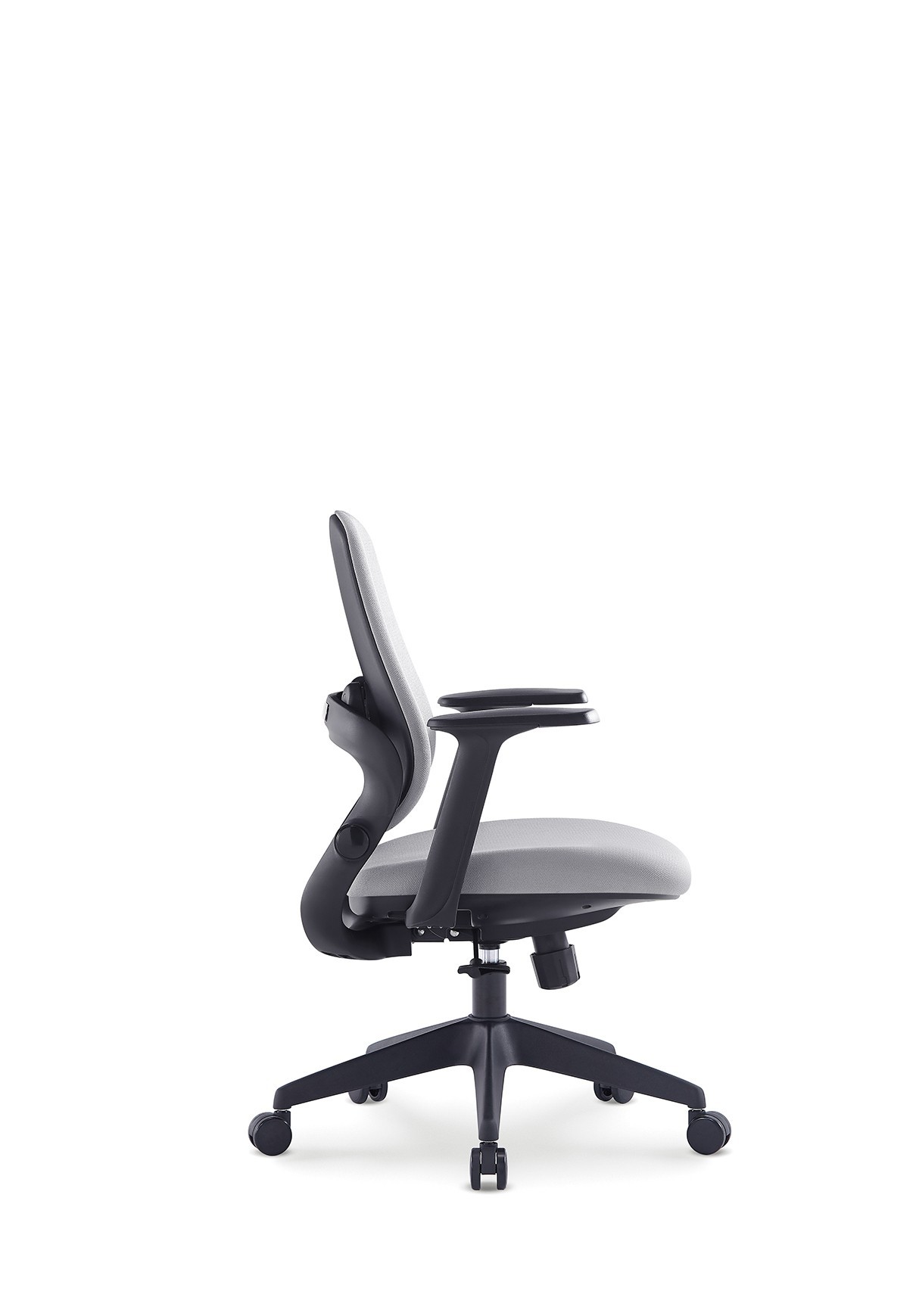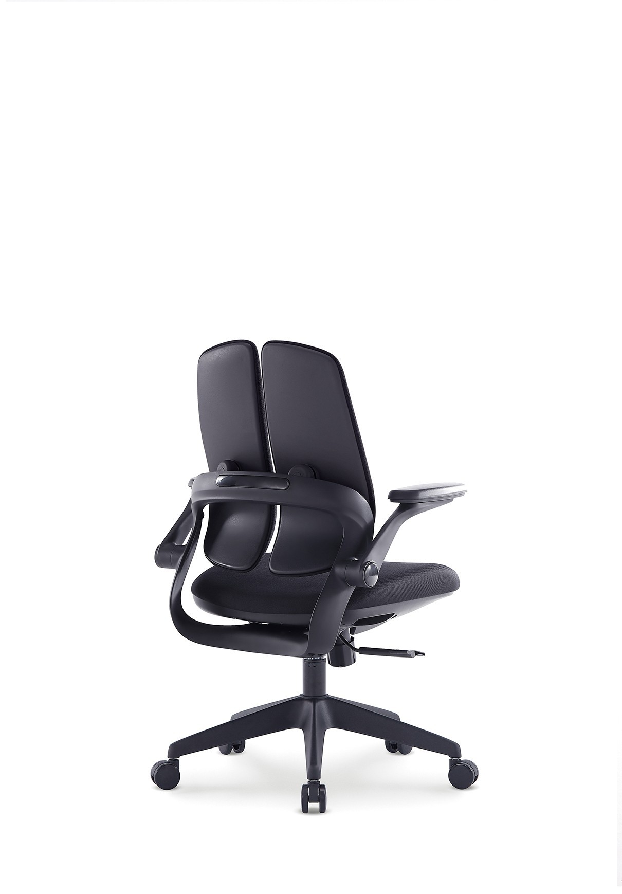 Professional task chair featuring dual-back fabric upholstery, ergonomic support, adjustable armrests, and smooth mobility for productive office environments.