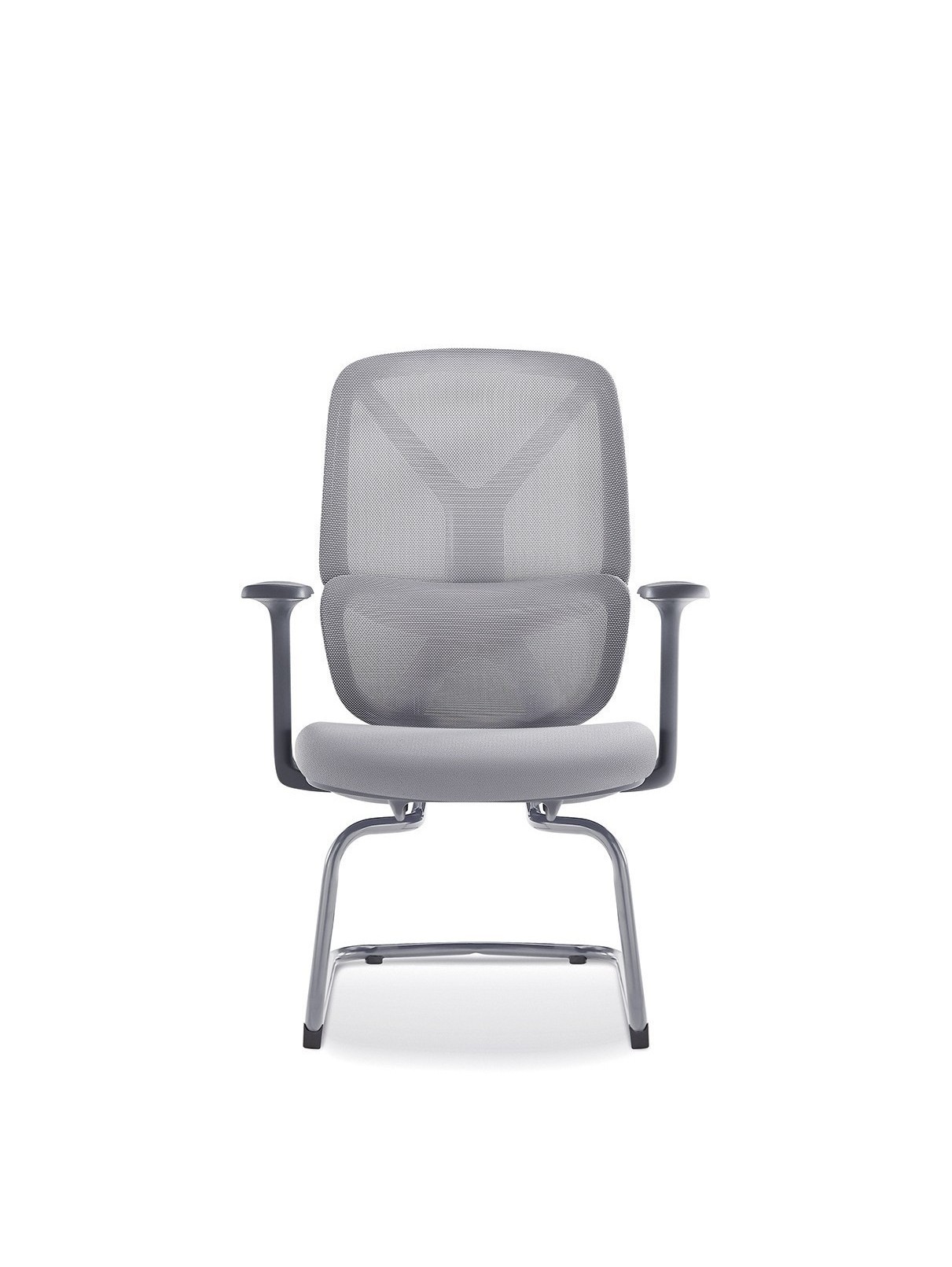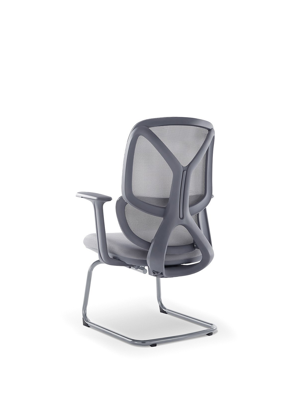 Stylish cantilever guest chair with breathable mesh back, chrome steel frame, padded seat, fixed armrests, and stationary base for visitor seating.