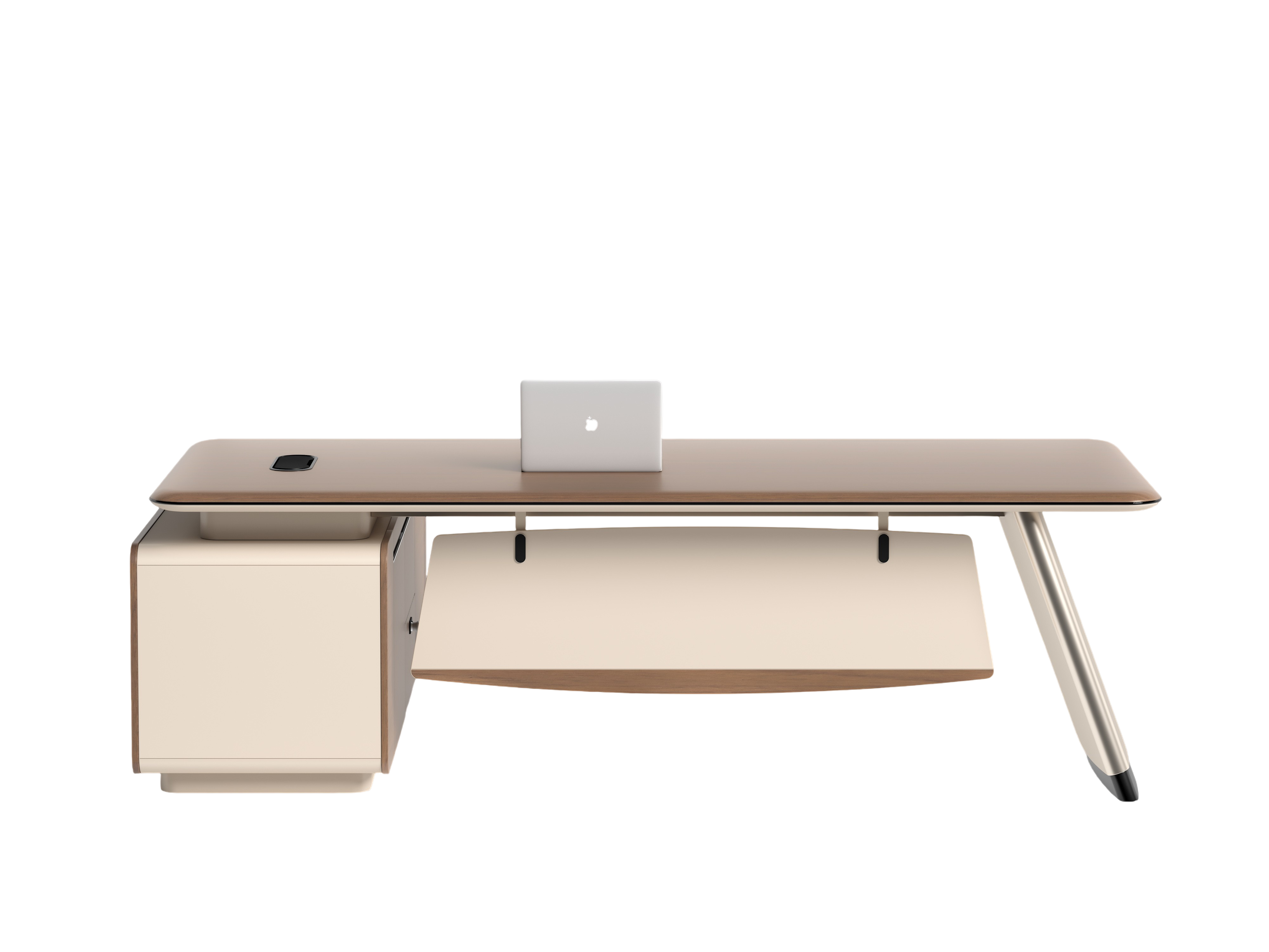 - Desktop: High-grade engineered wood with premium laminate finish in beige/taupe